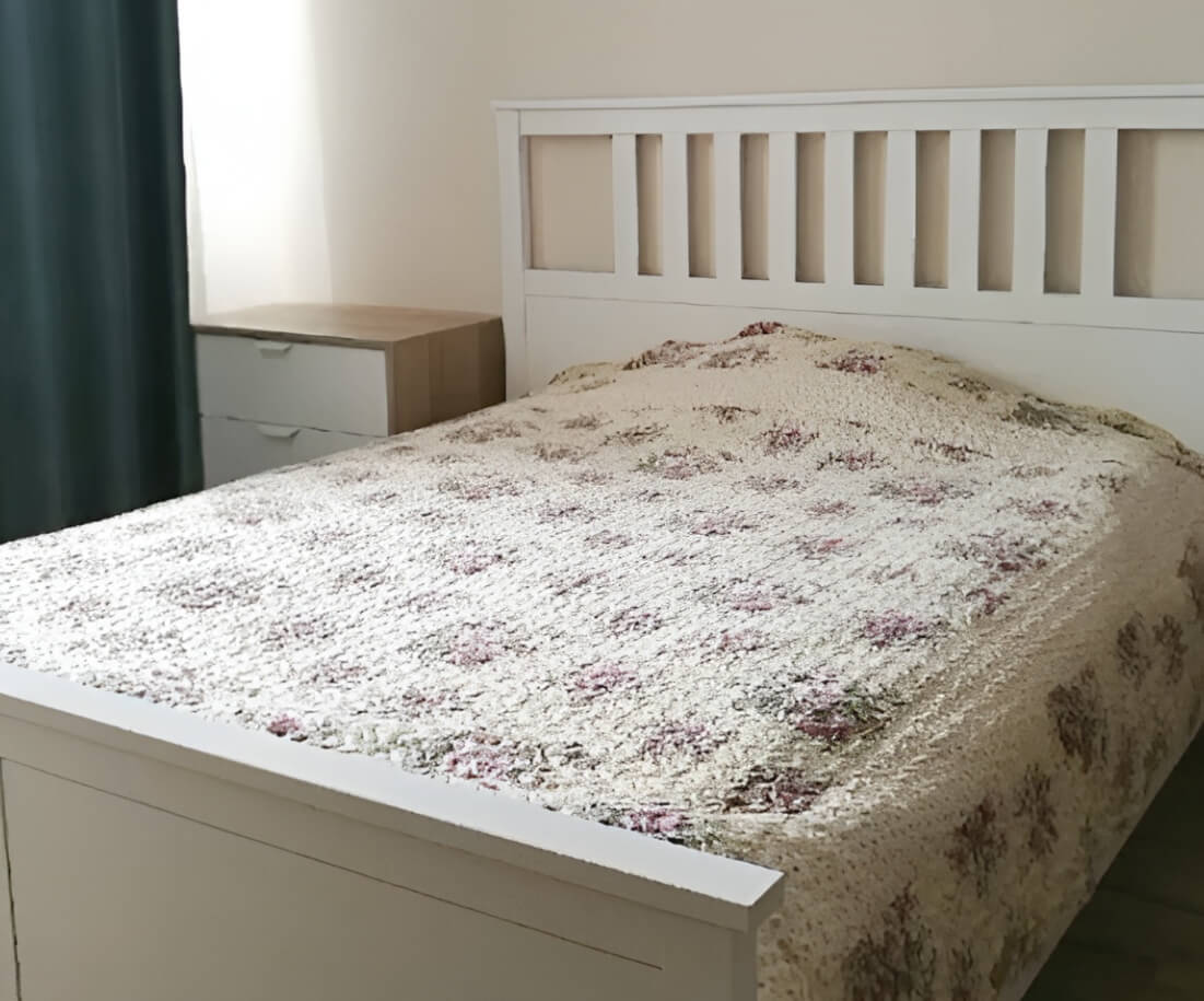 Завершающий этап — аккуратное накрытие кровати покрывалом. Мы обеспечиваем идеальное покрытие, где каждый угол покрывала равномерно распределен, создавая эстетически привлекательный и аккуратный вид. Наша команда уделяет внимание каждой детали.